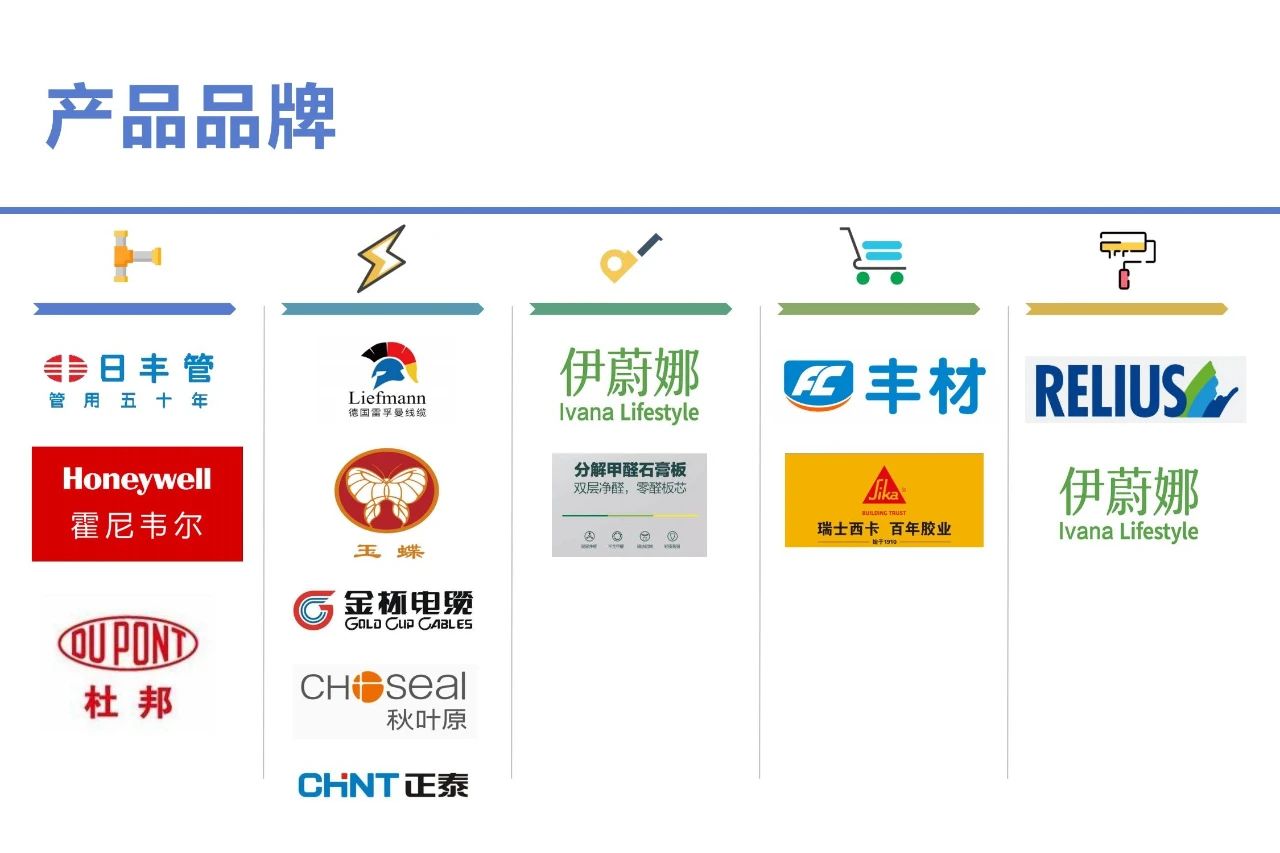 光斗辅材库旗下产品有日丰、杜邦、玉蝶、金杯、伊蔚娜等十余个品牌,品类涵盖了水电、板材、粉料、漆。目前,公司与贵阳51家装企、工作室、工长建立了长期稳定的合作关系,在行业内也树立了良好的口碑。