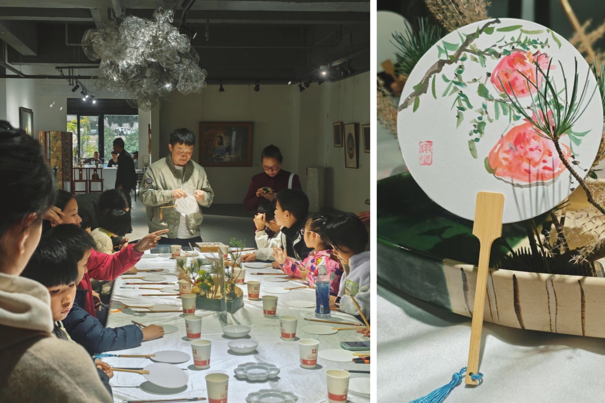 贵州一绘教育工作室的三青老师、罗广老师指导小朋友进行手绘扇面制作。温馨愉快的氛围中,活动圆满结束。