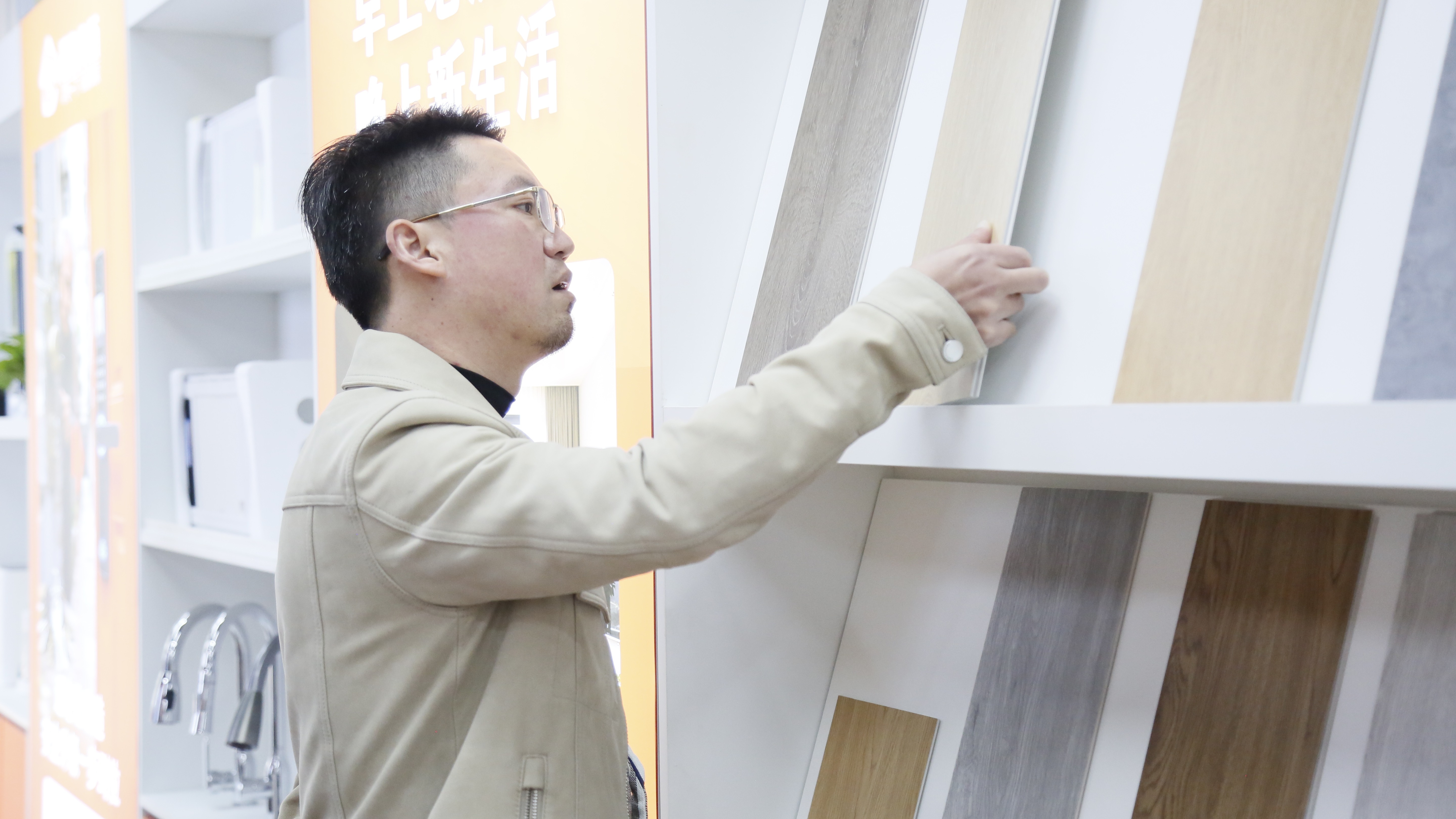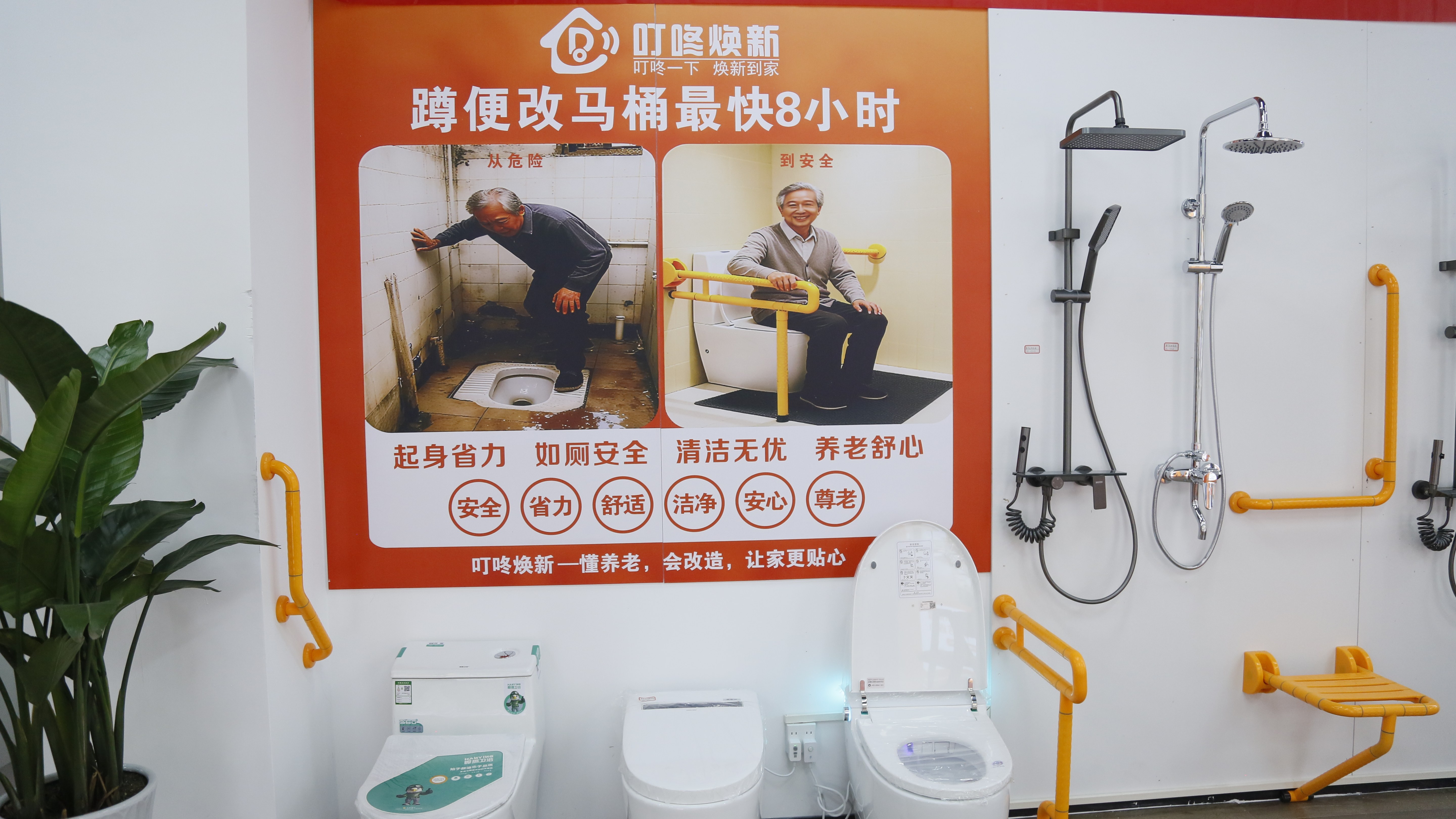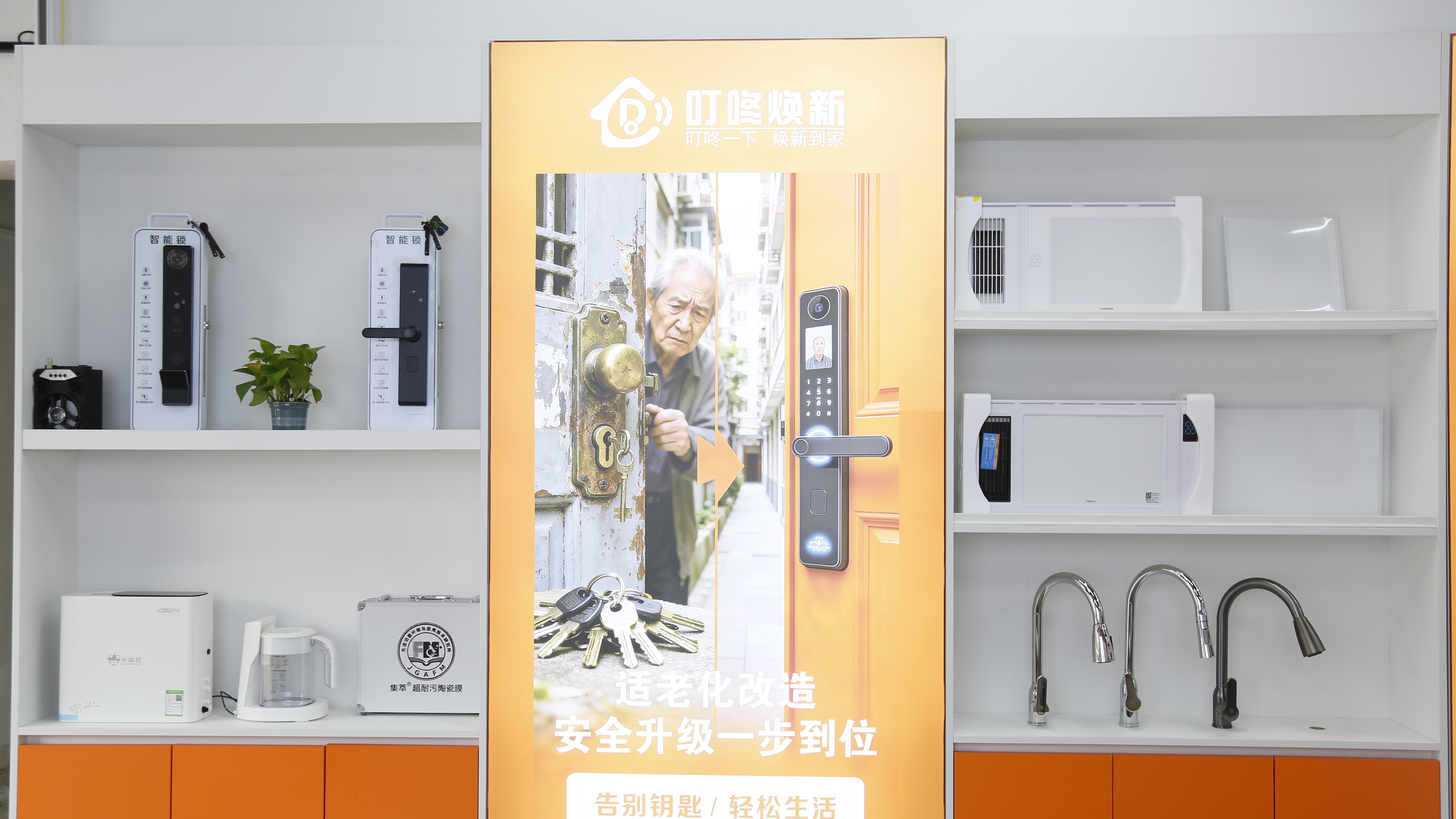 门店内展示了多类多款适用于旧房翻新、适老化改造的材料和物品。