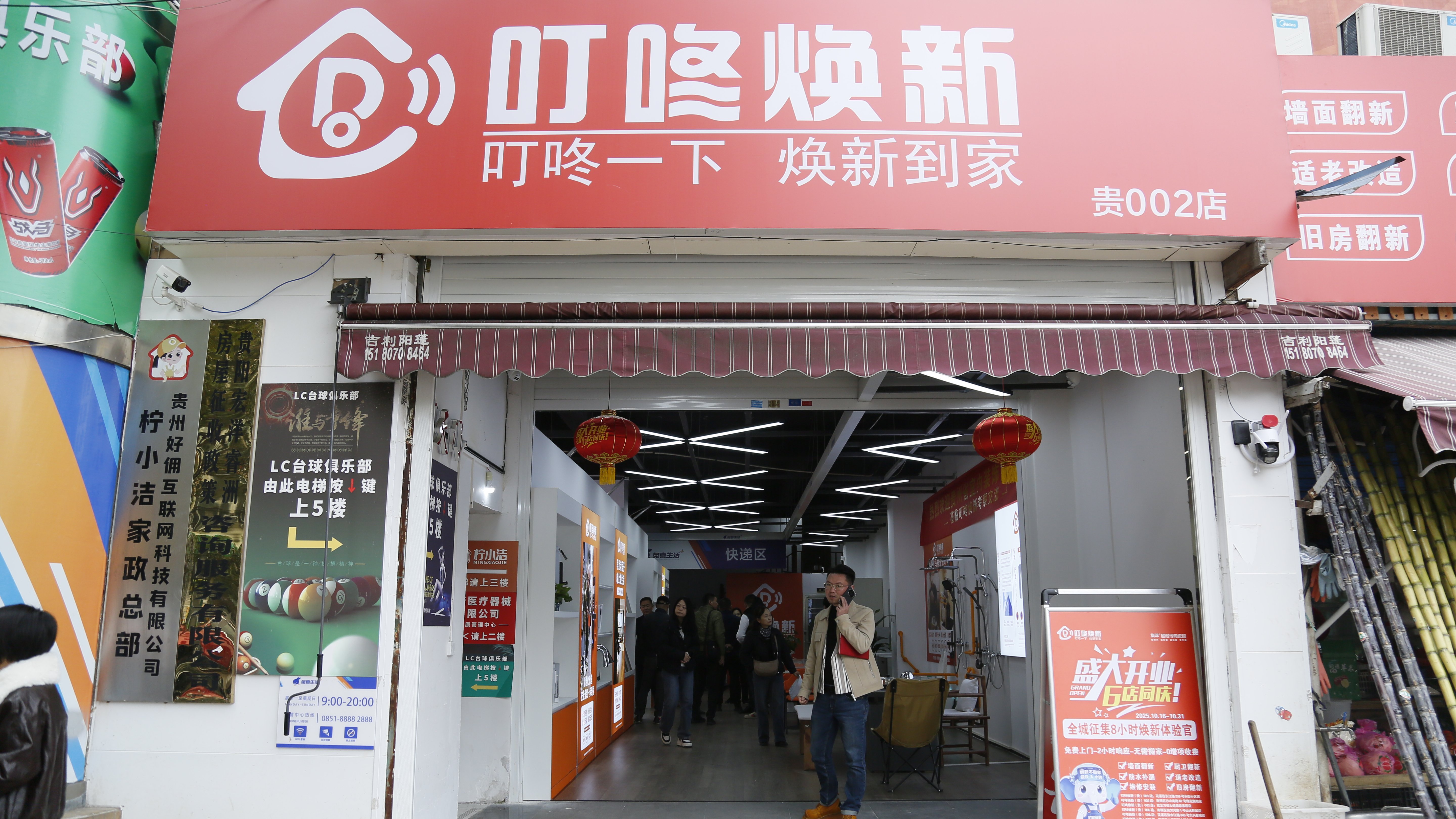 走访的第二站,调研组来到协会新晋理事单位——贵州叮咚焕新企业管理有限公司位于贵阳绿苑小区转盘的门店。