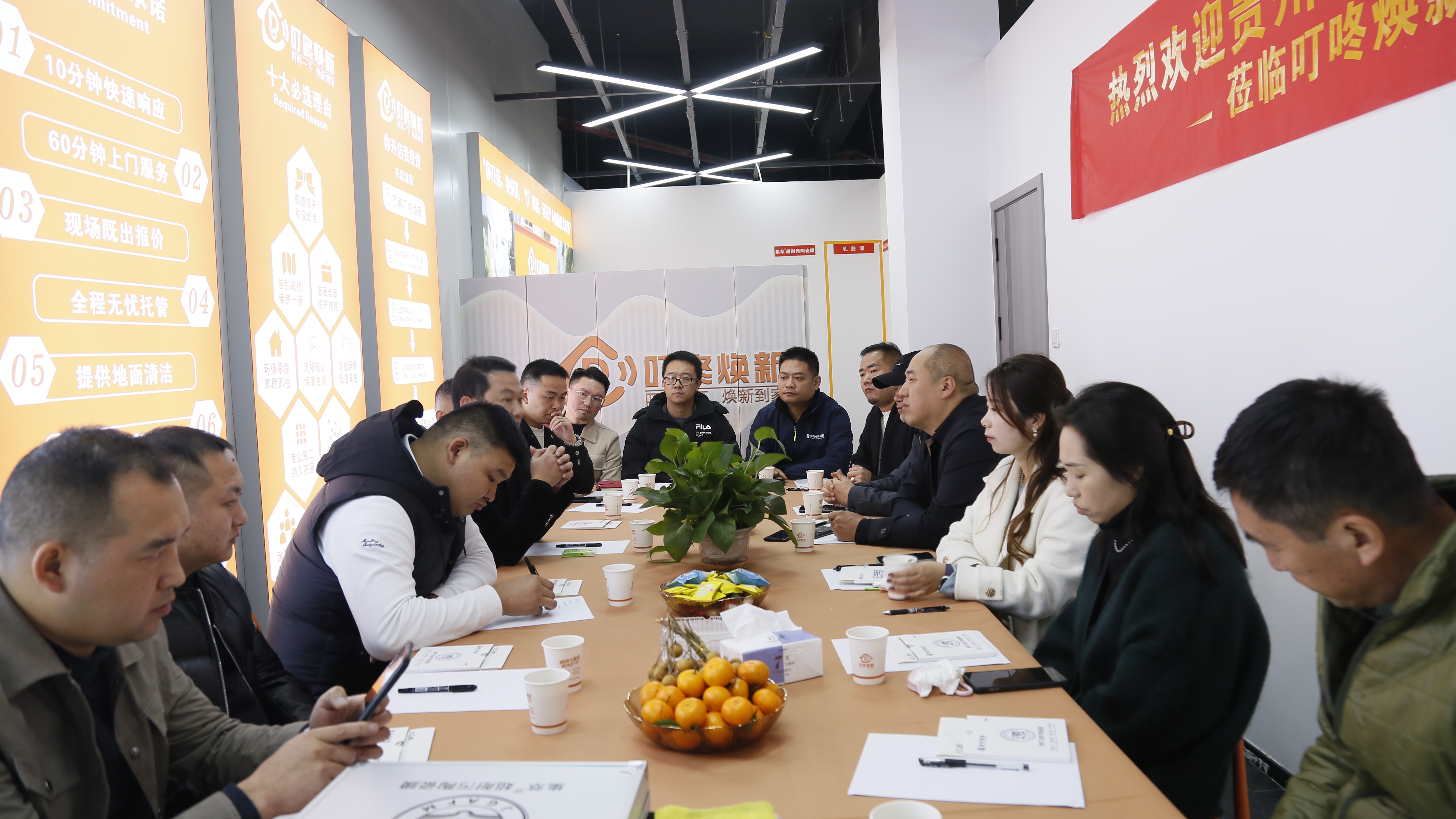 柏瑞贵兴总经理刘小辉,叮咚焕新总经理叶槟、项目总经理熊光中、财务负责人肖仕勇,大角鹿瓷砖贵州运营中心总经理杨贵刚对调研组一行的到访表示热烈欢迎。