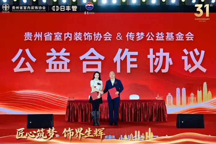 随后,贵州省室内装饰协会与传梦公益基金会签订《公益合作协议》。未来,双方将通过多元化形式,汇聚更多爱心力量,携手为贵州乡村教育注入社会力量,助力贵州乡村振兴,同时推动装饰行业企业履行社会责任,塑造行业公益形象,实现“教育帮扶+行业赋能”的双向共赢。