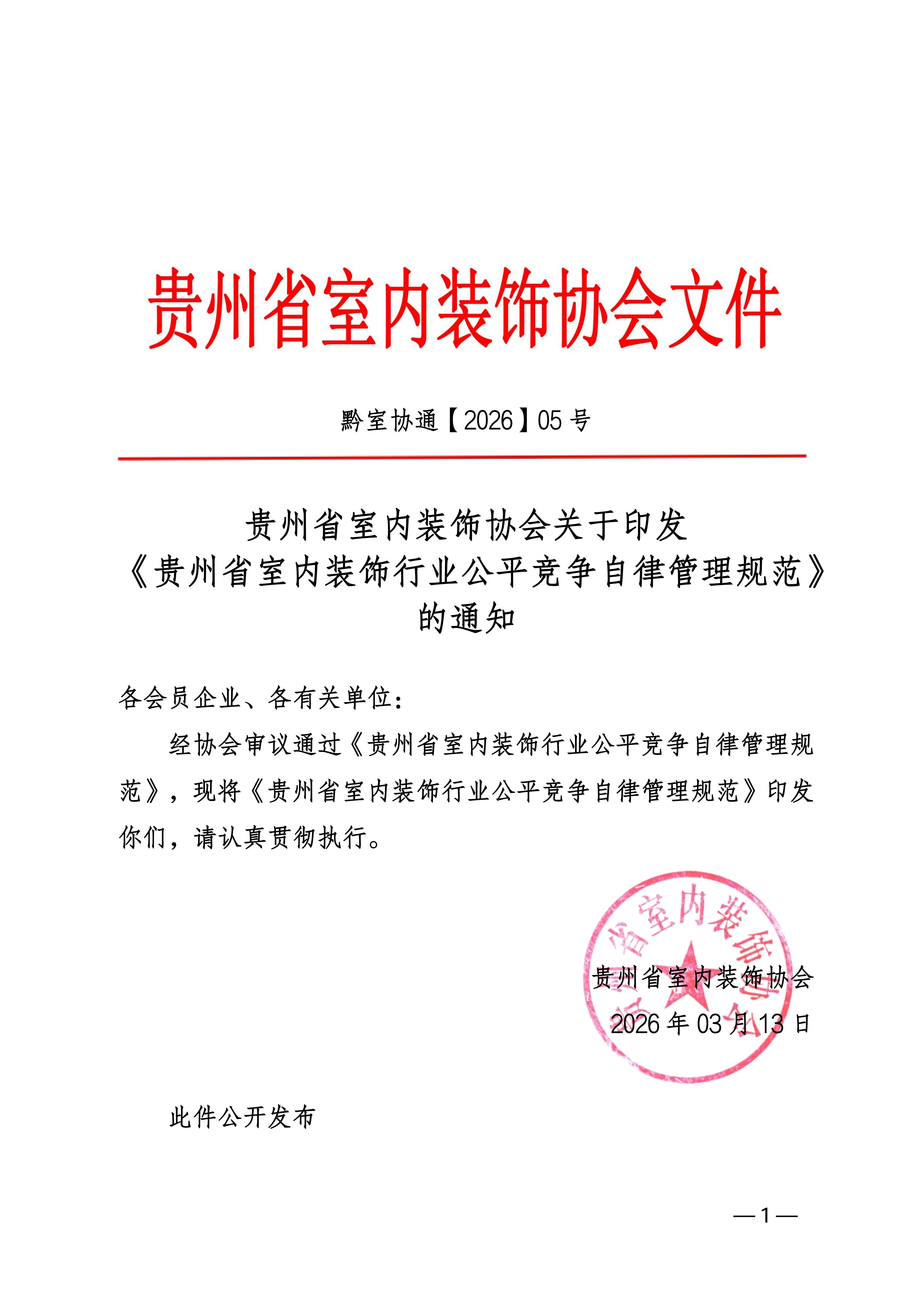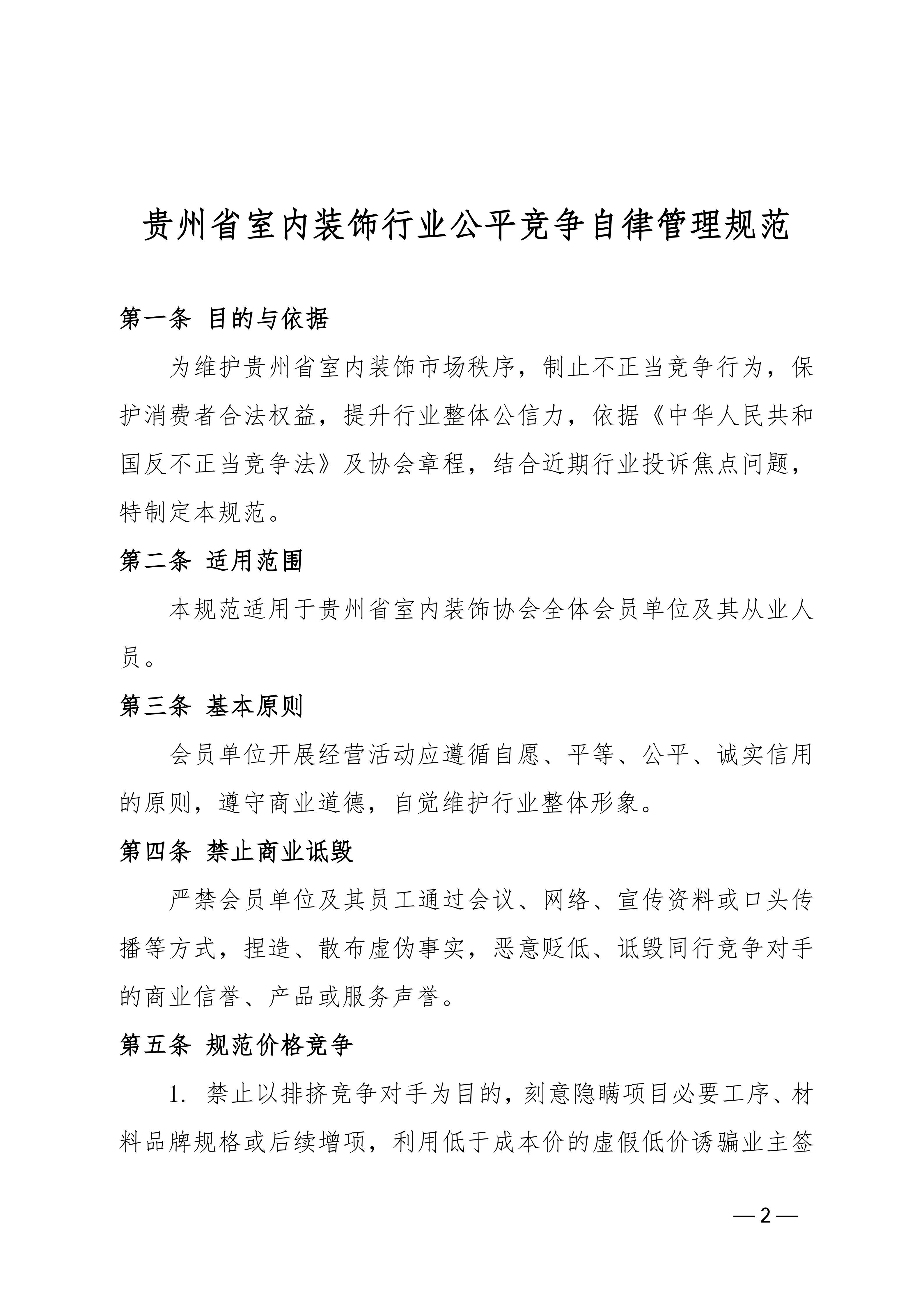 关于印发 《贵州省室内装饰行业公平竞争自律管理规范》 的通知