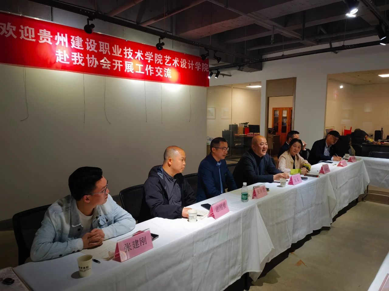 2025年4月28日,贵州建设职业技术学院艺术设计学院院长彭江林带领艺术设计学院副院长赵文玉、艺术设计学院建筑装饰工程技术专业主任李晓庆、艺术设计学院实习就业科姚夏溪老师来我协会开展工作交流。