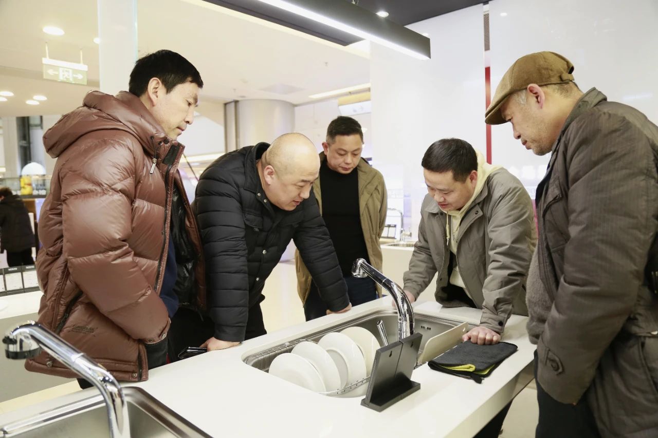 贵阳胜易佳商贸有限公司,成立于2010年,是贵州省室内装饰协会常务理事单位。公司主要代理国内外知名厨房电器、卫浴等品牌。如方太电器、韩国白鸟水槽、瑞典厨师电器、瑞士GEBERIT吉博力卫浴、德国KLUDI科鲁迪卫浴、德国BVATSI铂丝卫浴等。调研组一行走进企业位于南明区花冠路红星美凯龙的方太电器与白鸟水槽门店,一眼望去,店内环境宽敞明亮,各类厨电、卫浴产品摆放井井有条,吸油烟机、灶具、洗碗机、热水器、净水机、水槽等一应俱全,颜值与功能兼备。在这里,每个人都能直观感受到未来厨房的模样,既时尚又实用。