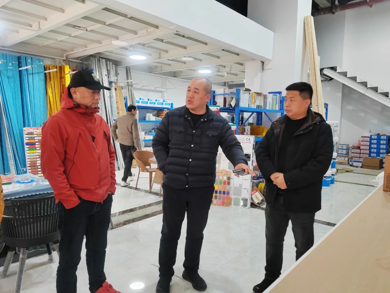 贵州新森达装饰建材有限公司是贵州省室内装饰协会常务理事单位,主要经营各种装饰建材、地板、五金、防水材料等,旗下有可耐福、泰山石膏、兔宝宝等多个品牌,产品丰富选择性强。调研组在李树泽总经理的热情引领下,探访了企业位于贵阳西南国际商贸城6号广场的多家销售门店。