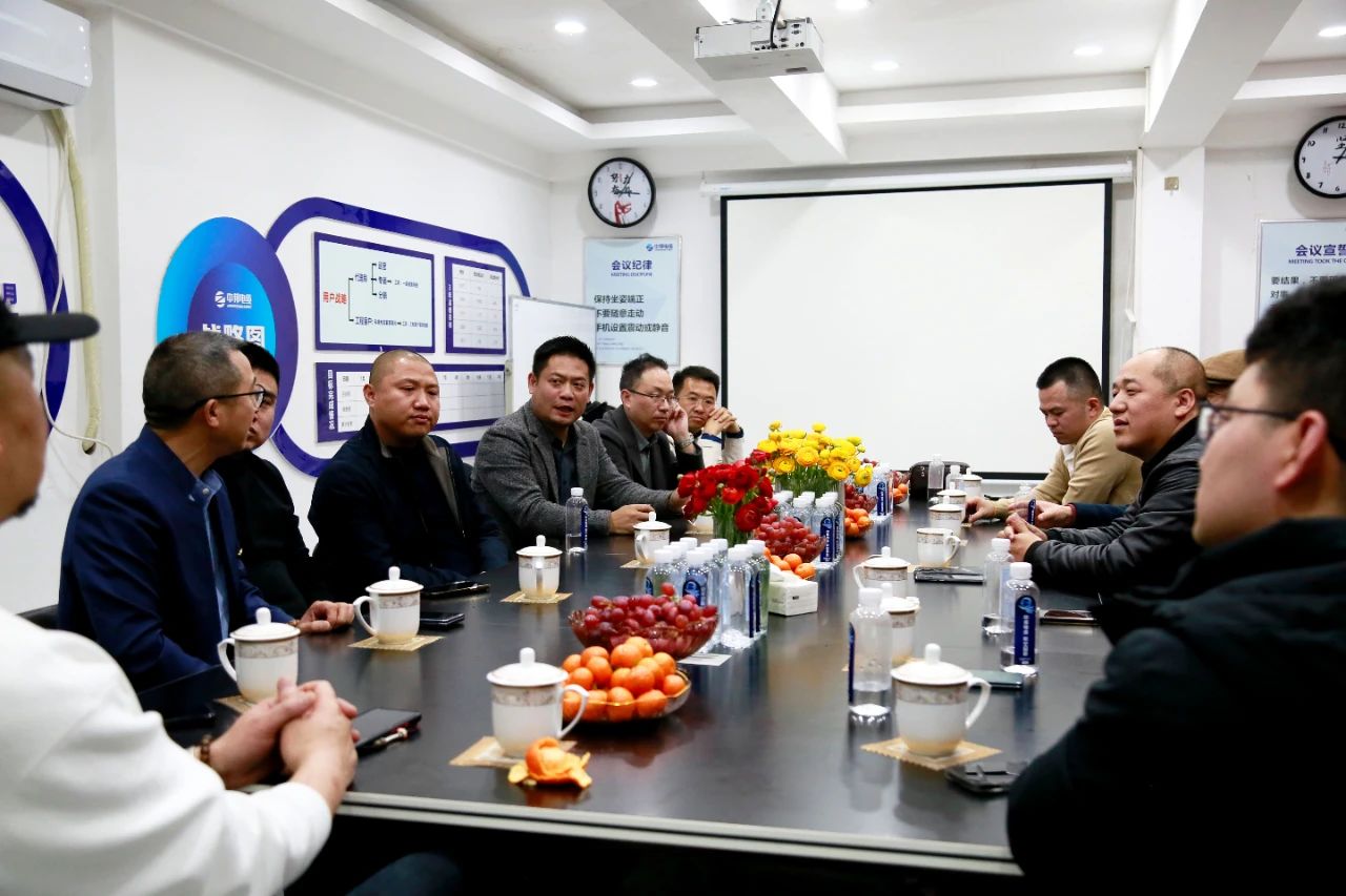 在随后的座谈会上,双方就电线电缆与室内装饰行业的协同发展、产品创新应用等议题展开深入交流。总经理武光超、销售总监田兵、家装部负责人廖毅分别介绍了企业产品体系、未来规划、市场拓展及渠道开发情况。武光超总经理表示,本次协会领导与装修同行到访是一次促进行业交流、推动合作发展的重要活动,中邦线缆将以此为契机,持续加大研发投入,根据装饰行业需求优化产品,与大家共谋合作新机遇,携手推动行业发展。
