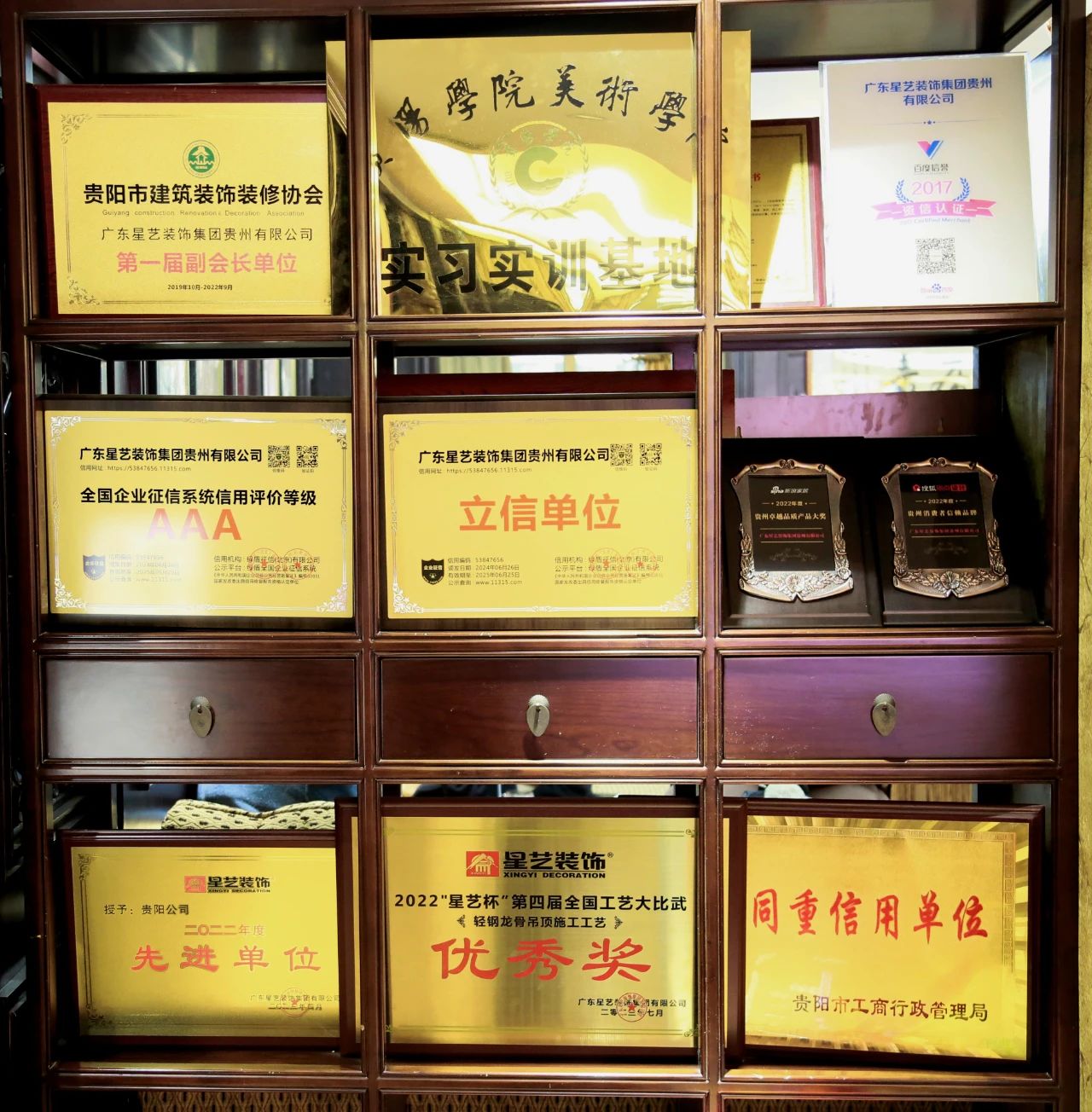 作为贵州省室内装饰协会理事单位,星艺装饰在林城大地树立起“诚信装修”的旗帜,赢得消费者与业内的一致认可,先后荣获“质量服务诚信企业”、“诚信标兵企业”、贵阳消费者协会“诚信装修企业”、贵阳家装行业“品牌影响力设计机构”、贵州省室内装饰行业协会“年度最具影响力装饰企业”等殊荣。