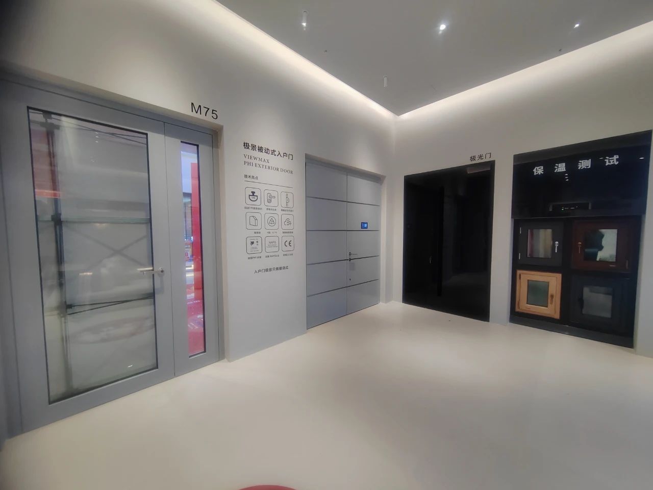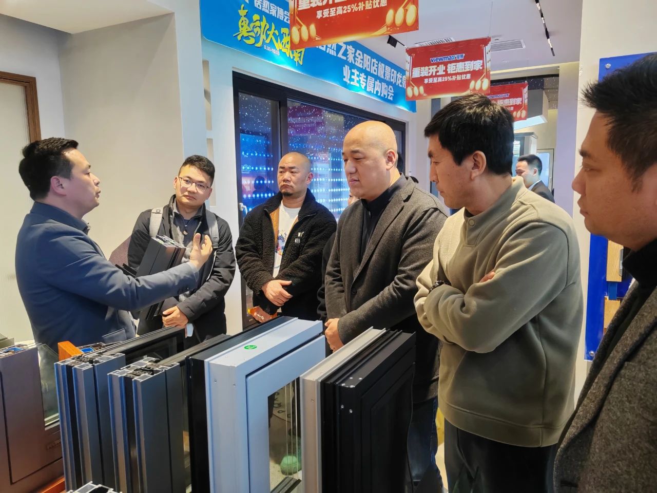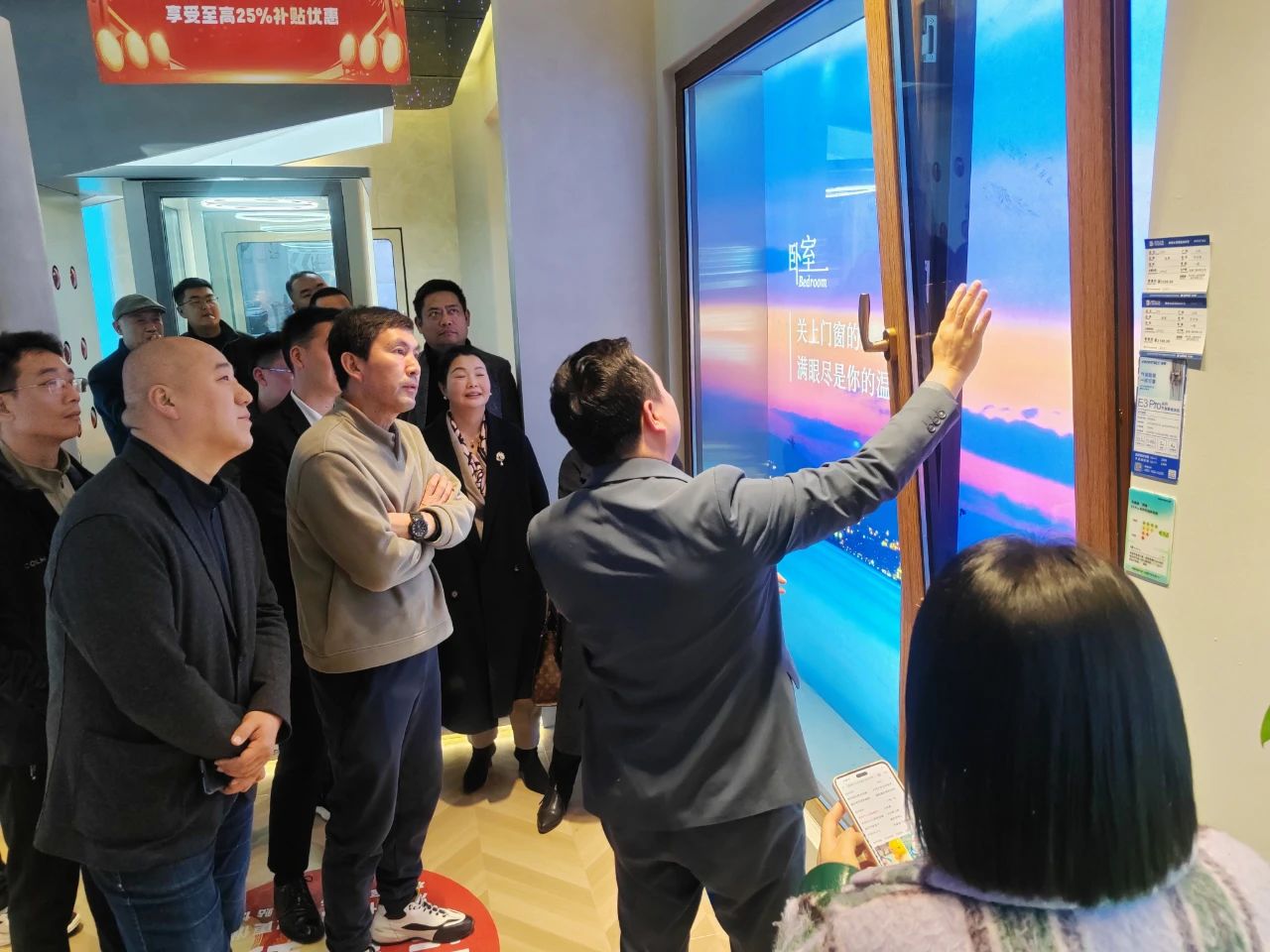 在张洪飞总经理的引领和讲解下,调研组参观店面,进一步了解极景高性能门窗。