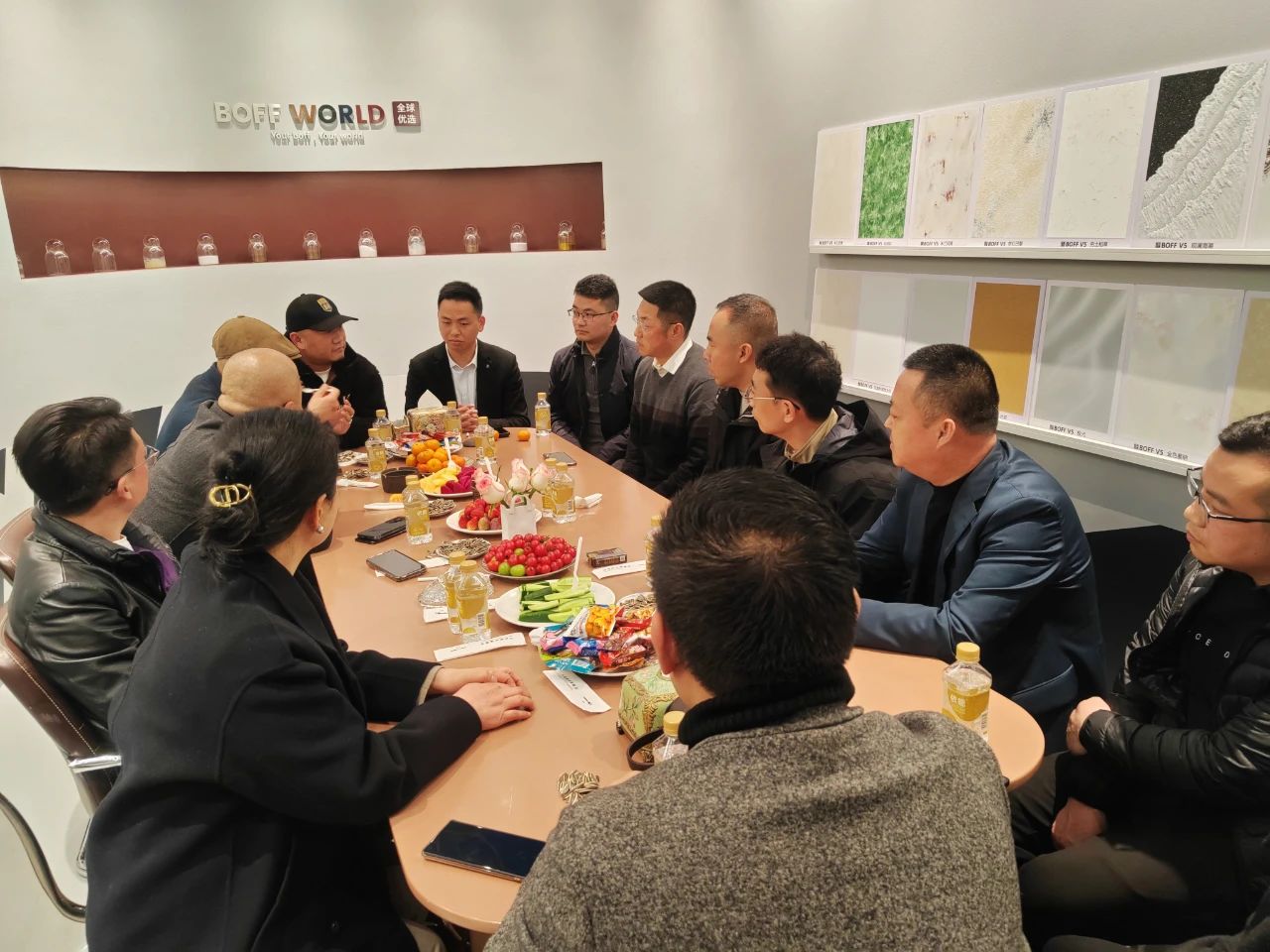 随后,双方就艺术涂料能否代替乳胶漆、企业分销模式、打造场景体验等方面进行交流。