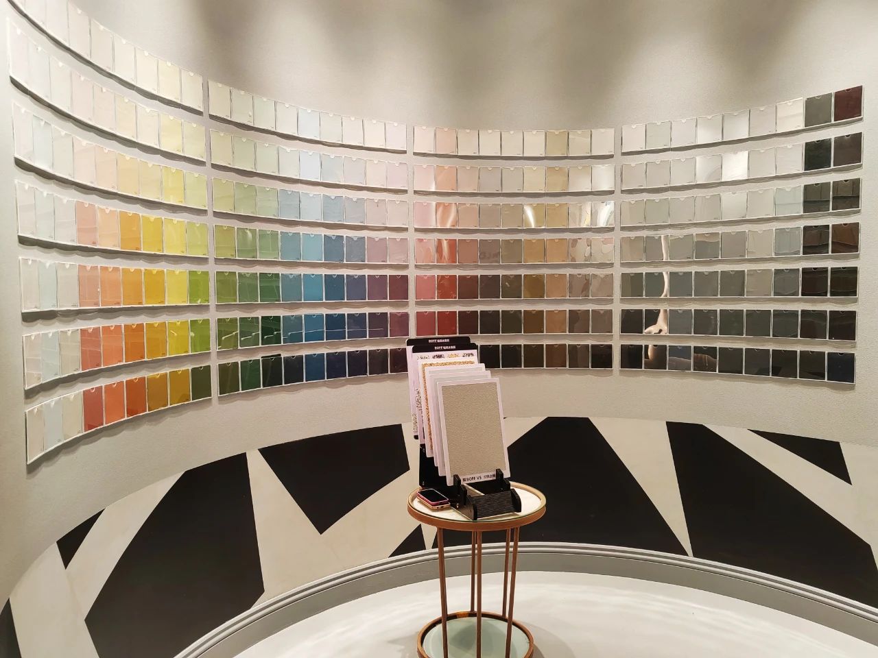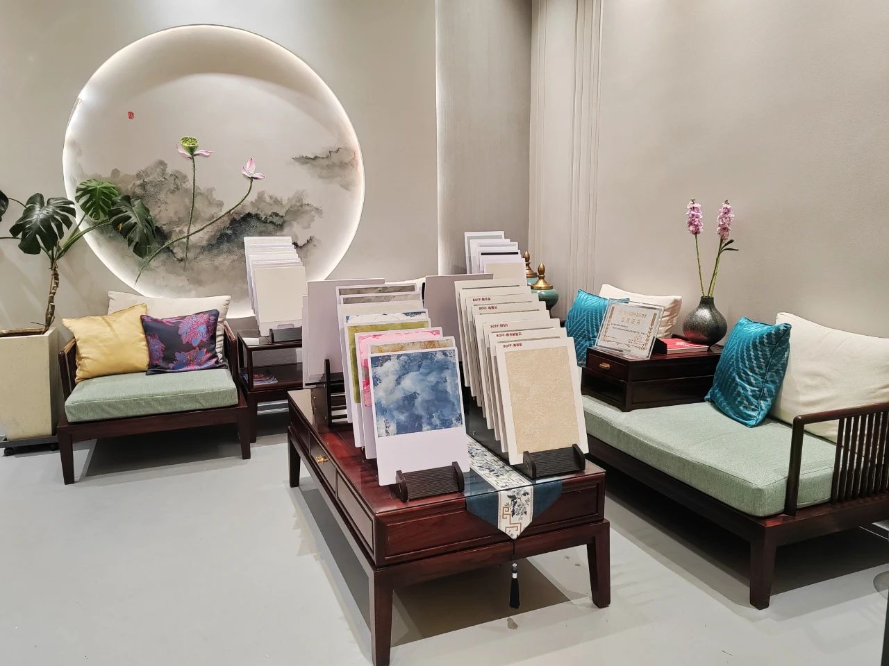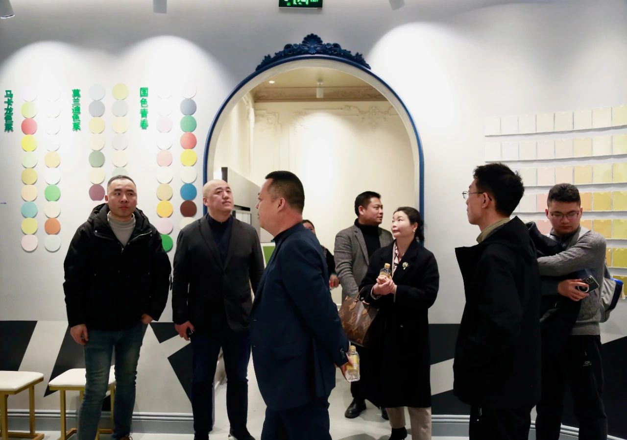 调研组来到福色公司位于居然之家(金阳店)的铂芙艺术壁材门店。据公司联合创始人王永恒介绍,企业成立以来专注墙面材料、施工、前期生产,力图深耕贵州辐射西南。随着消费市场降级,公司经营模式调整,启动零售平台。为更好地普及艺术涂料,还打造了福色涂料超市,涵盖样板、工具、涂料。公司联合创始人王宇也回顾了企业从硅藻泥向艺术涂料转型的历程,并梳理艺术涂料美观耐用、满足用户多种需求的核心优势。