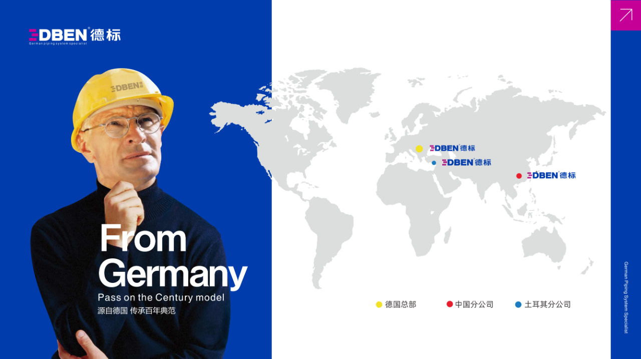2006年初,德国德标管道系统有限公司在中国设立制造基地——德标管业(上海)有限公司,产品实现了在中国的本土化生产,包括PP-R管、PP-R Ag+抗菌管、管卫一体化暗装花洒、智能马桶角阀等。贵州德标管业有限公司是上海总公司驻贵州分部,是贵州省室内装饰协会常务理事单位。