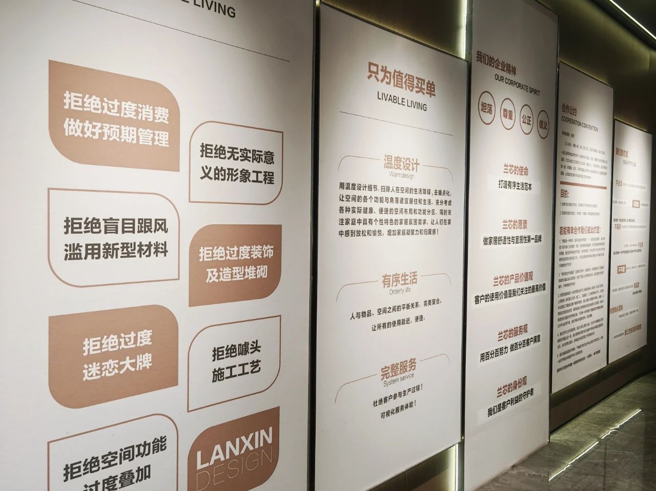兰芯家居是贵州省室内装饰协会理事单位,成立于2022年,隶属贵州君创博观企业管理有限公司旗下,为集团核心企业之一。企业以打造有序生活范本为使命、做家居舒适性与宜居性第一品牌为愿景,将客户的使用价值作为企业关注的最高价值,以“客户利益守护者”的身份,力求用百分百努力、做百分百客户满意。