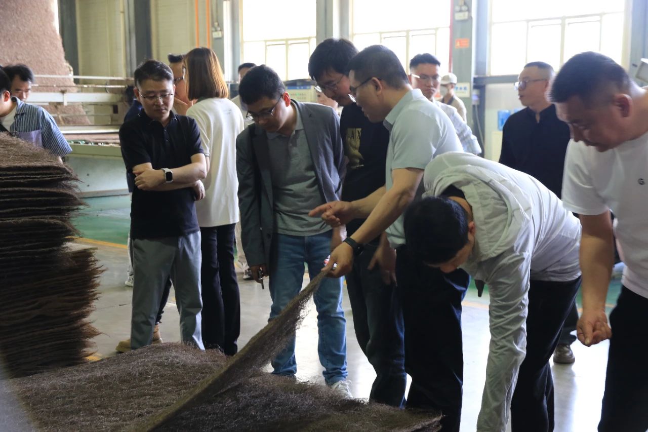 一根根纤维丝在企业自主研发的棕床垫全自动生产流水线上,经历分解、喷胶、热压硫化、定型成片等多项工艺后焕然一新,成为具有三维空间网状结构、良好支撑性能与绿色生态性能的健康护脊床垫。