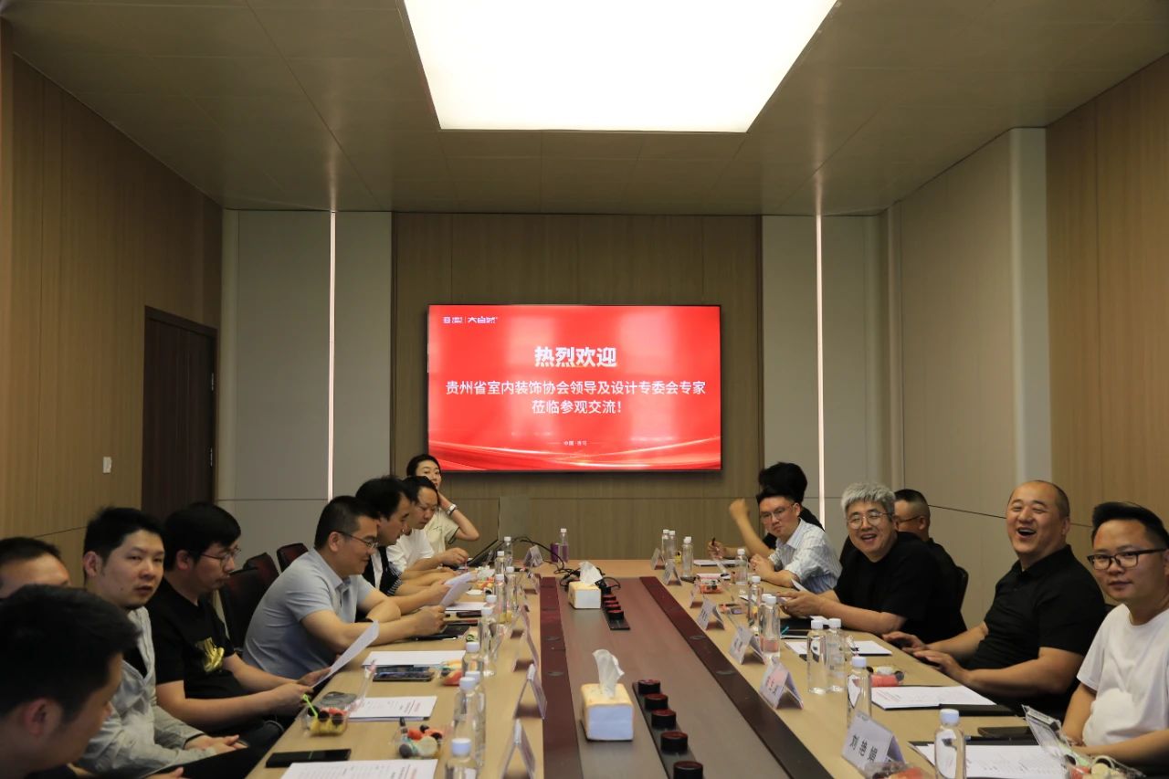 5月21日,贵州省室内装饰协会会长高磊率执行秘书长张建刚、副会长兼设计专委会主任李春生、理事兼设计专委会副主任李雄明、设计专委会执行秘书长杨庆彪,以及来自贵州璞道空间设计有限公司、贵州道业装饰设计工程有限公司、贵州文派装饰装修工程有限公司、贵州尚意软装设计有限公司、贵州艺裕希空间设计有限公司、贵州九悦空间设计有限公司、贵州必雄设计事务所、赫盛全案设计有限公司、贵州水平线空间设计有限公司、贵州溪上装饰工程有限公司、中宇盛合工程设计有限公司、贵州天梭电梯、贵州烁德绿电新能源科技有限公司、贵州福人销售中心、贵州润树装饰公司的设计师代表和企业代表一行二十人,走进位于贵阳高新区的大自然科技股份有限公司参观交流。大自然公司总经理陈宗勇、定制事业部总经理许娟娟、定制事业部设计总监林鲜、定制事业部销售经理袁洁雪对高磊会长一行的到访表示热烈欢迎。