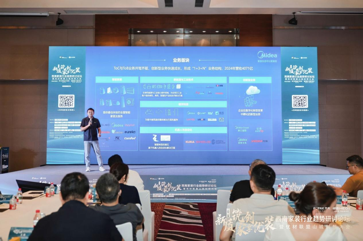 美的集团重庆运营中心前装负责人郭枫,他直指精细化运营与供应链整合能力是关键考题。美的以四大举措积极拥抱装企变革:以“多厅模式”精准适配不同圈层用户需求;推行“产品专供”保障销售无忧;提供“营销支持”实现多品牌分层运营;打造“一站式送装”服务闭环,彻底解决后顾之忧。这不仅是渠道策略的升级,更是构建装电融合新生态的宣言。
