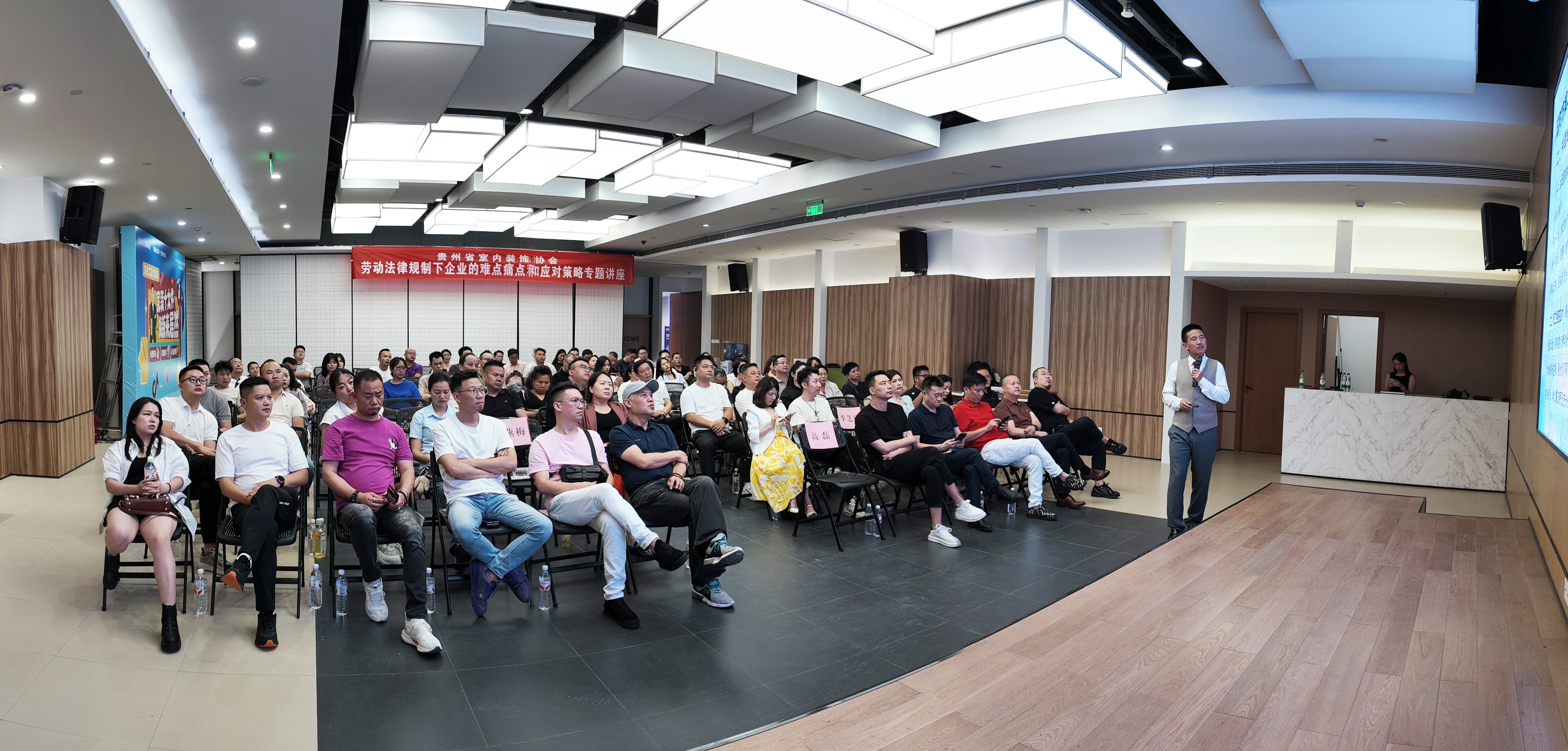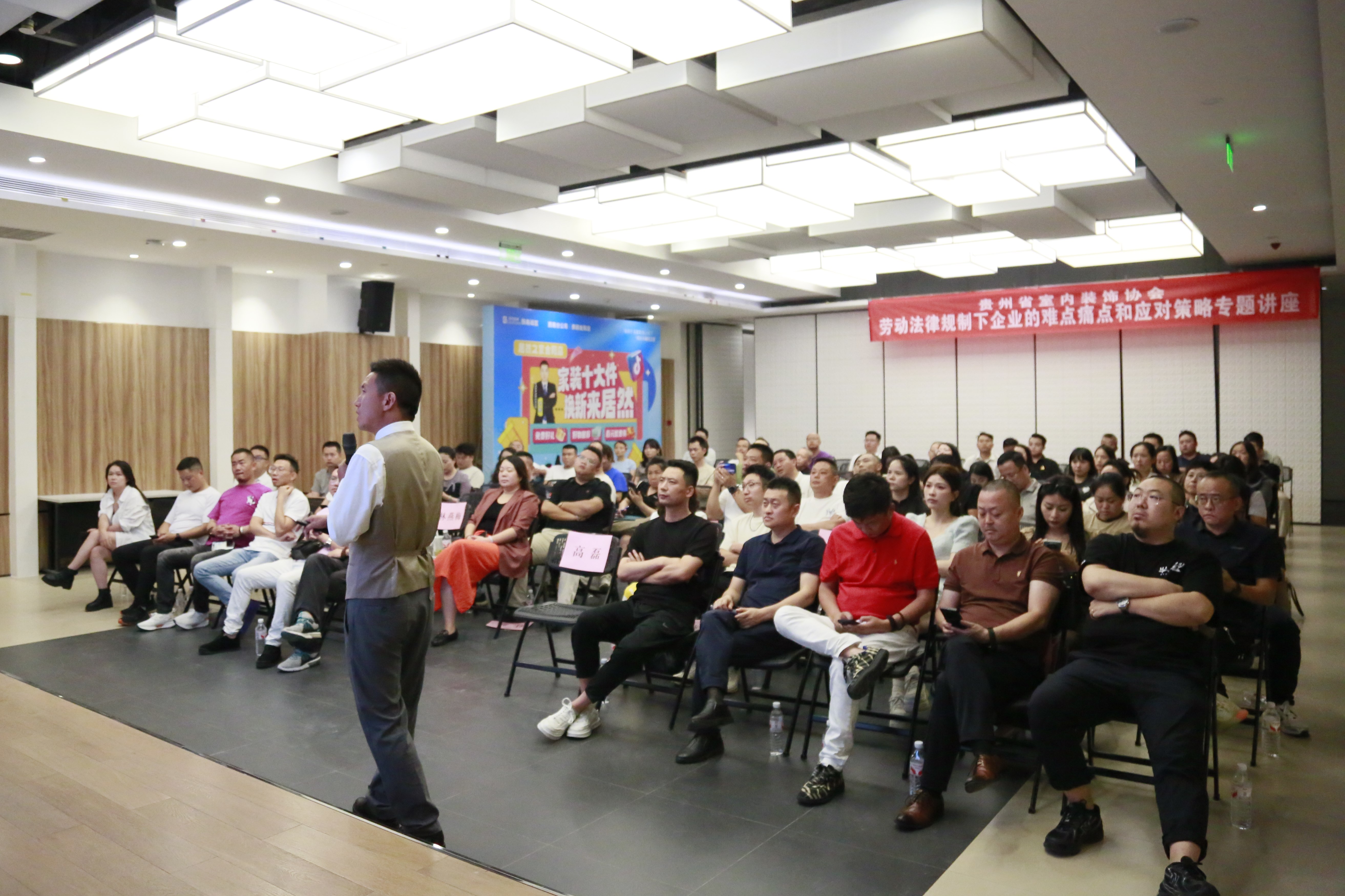 8月19日下午,一场针对企业核心关切的“劳动法律规制下企业的难点痛点和应对策略”专题讲座在居然之家金阳店4楼筑宅大师设计中心会议室如期举行。由我协会法律顾问、协会常务理事单位北京德恒(贵阳)律师事务所高级合伙人石军律师主讲,80余家会员企业负责人齐聚一堂,共赴这场干货满满的“法律实战课”。协会副会长甘剑琪、执行秘书长张建刚出席活动。