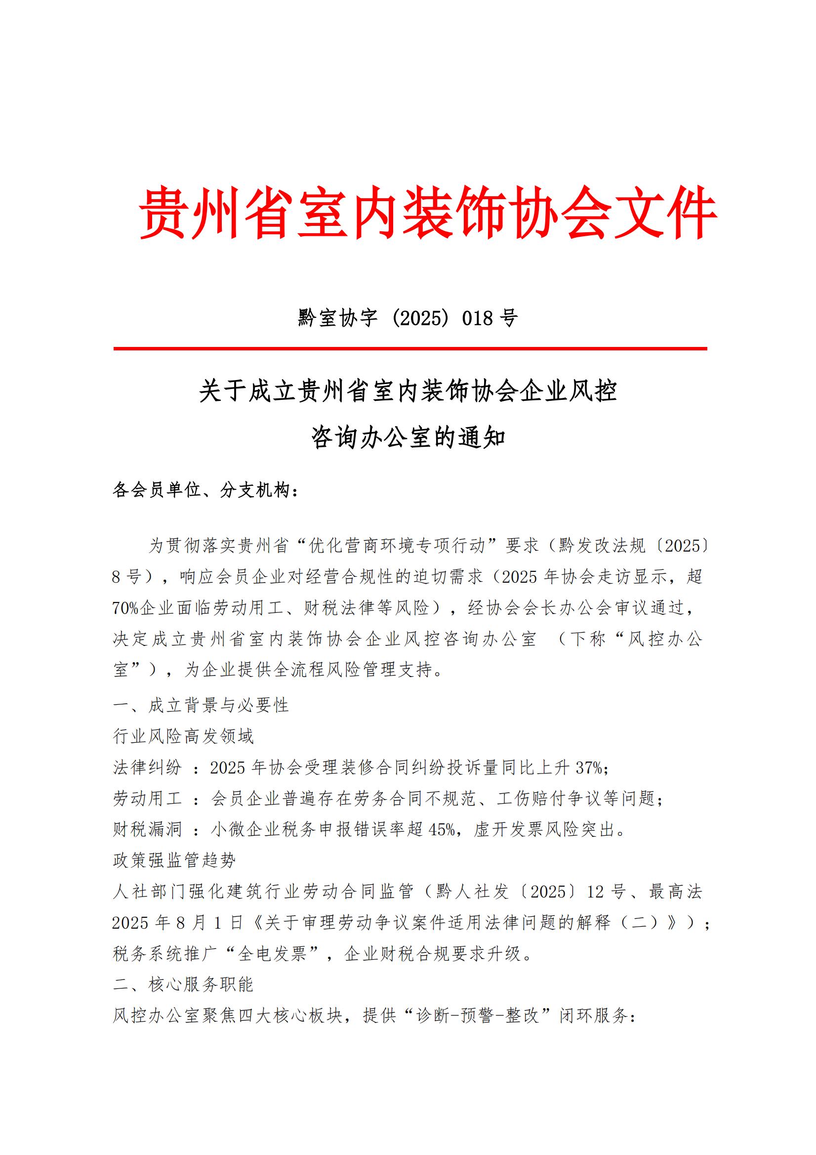 关于成立贵州省室内装饰协会企业风控咨询办公室的通知