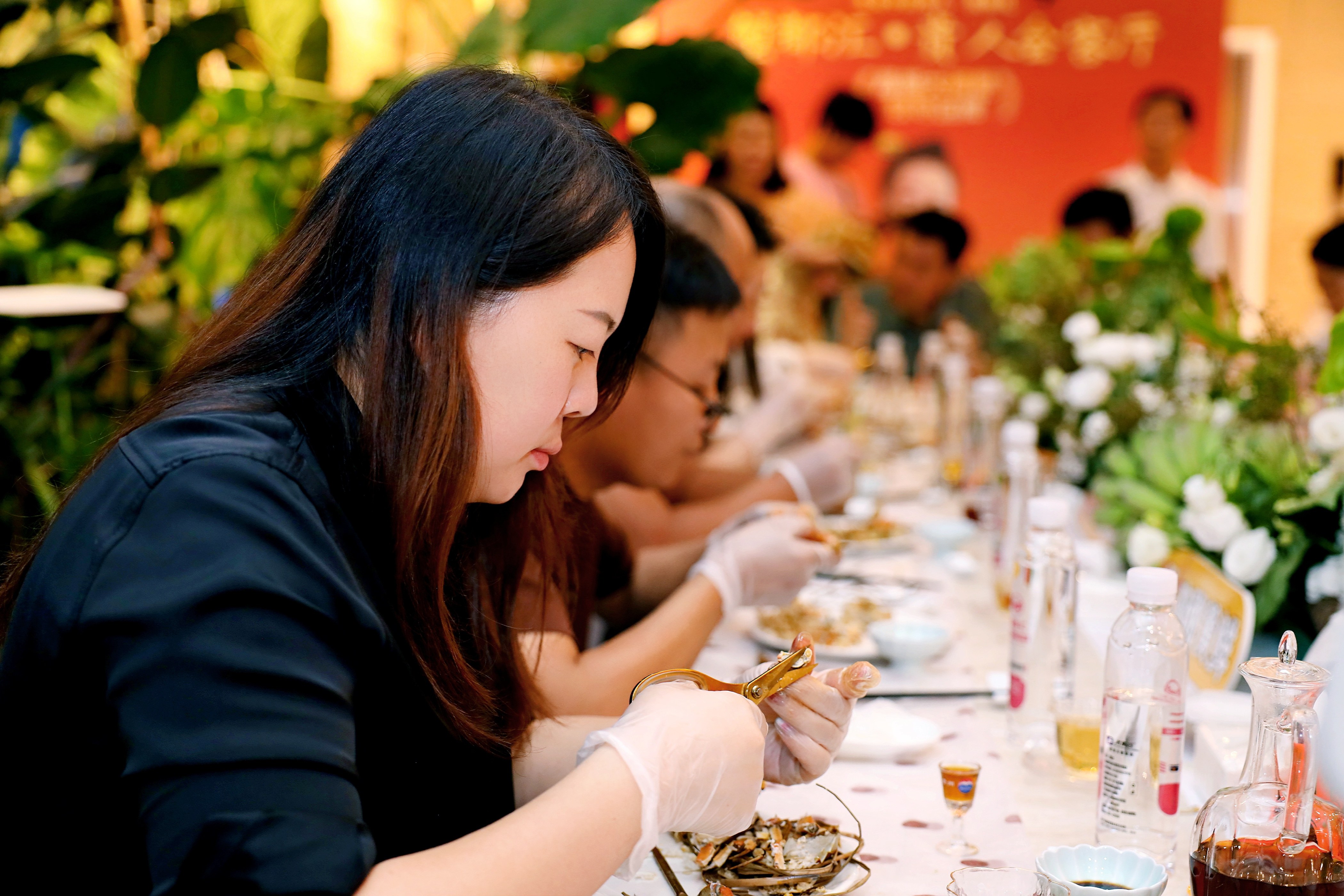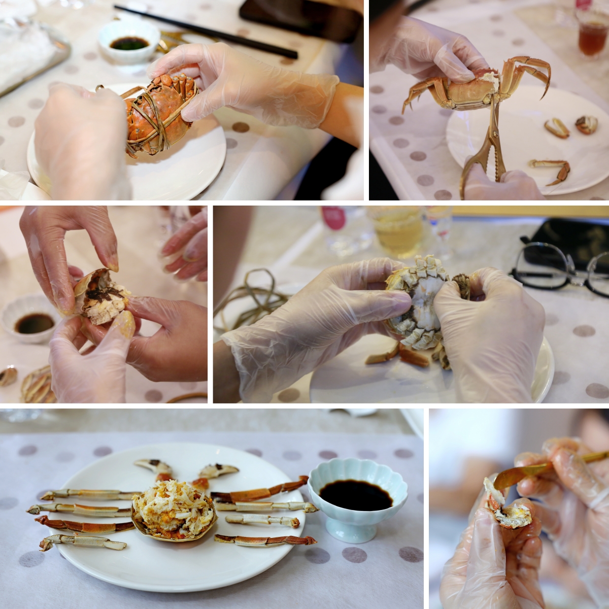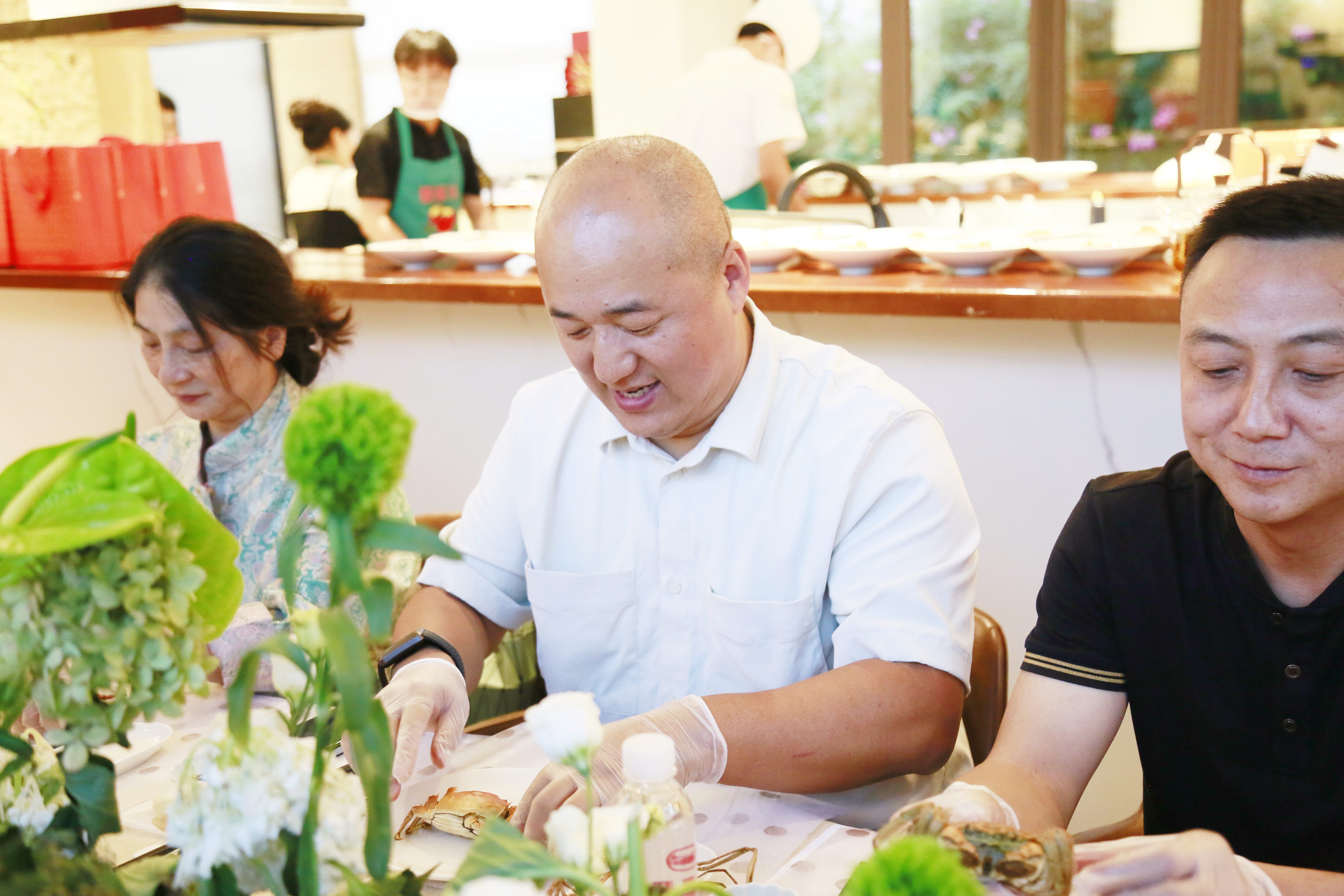 品蟹,自有一套仪式。在向总的讲解和示范下,大家学习了吃蟹的步骤和方法。