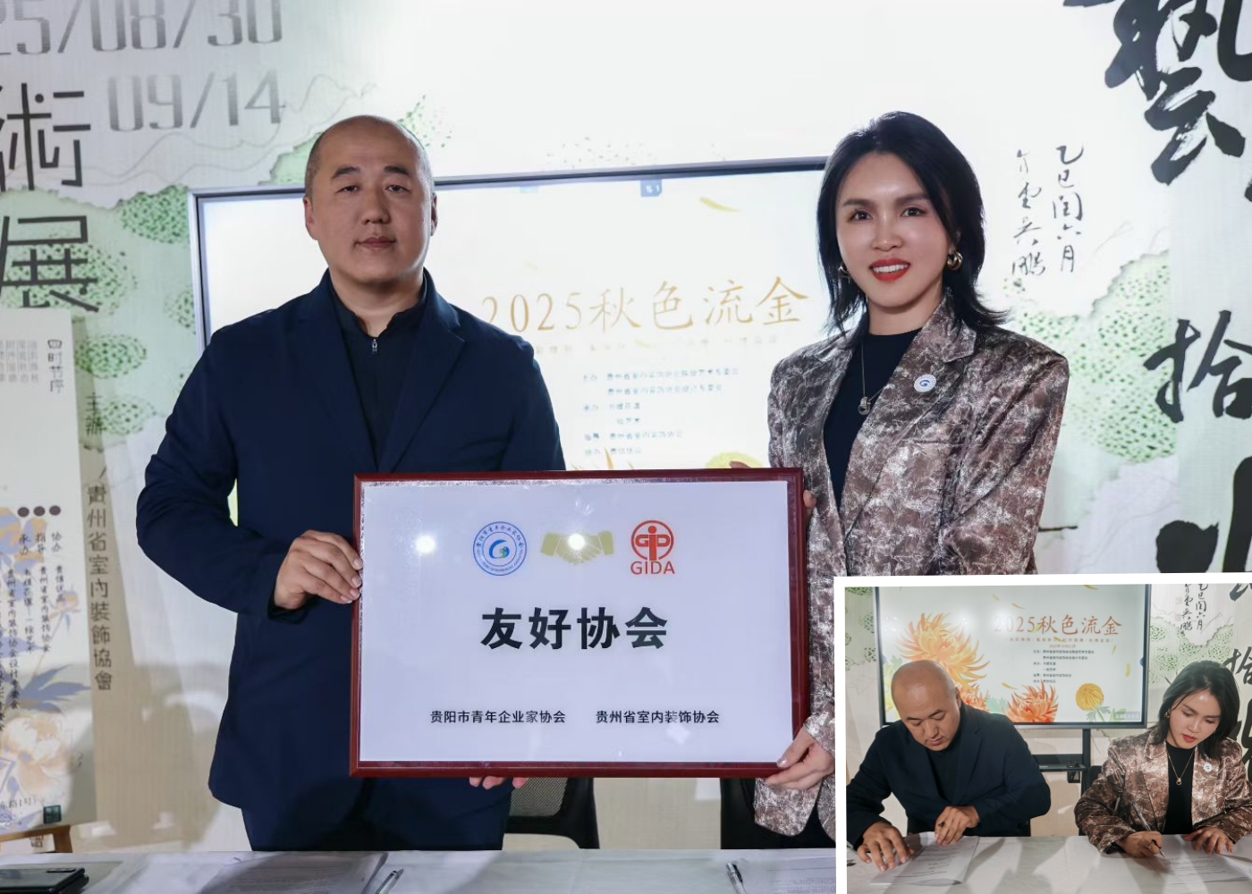 由贵州省室内装饰协会指导,贵州省室内装饰协会陈设艺术专委会、贵州省室内装饰协会设计专委会主办,书媛花道、一绘艺术承办,贵信优品协办的“四时节序·秋色流金”主题展同期举行。